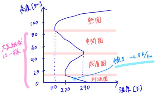■前回のおさらい 前回は「地球大気(鉛直構造)のお話」ということで、地球の大気の構造を勉強しました。 meteorolo.hatenablog.com ①大気圏とは、地球の引力によって大気が宇宙空間に逃げていかない領域 大気圏と宇宙空間の境界では、分子や原子の運動の速…